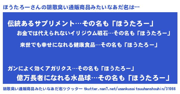 | ヘコむあだ名 | 『ほうたろー(爆)』『ほうを』 |