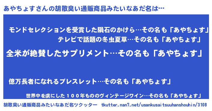 | 欧米人風あだ名 | 『アンジェラ・あやちょす』 |