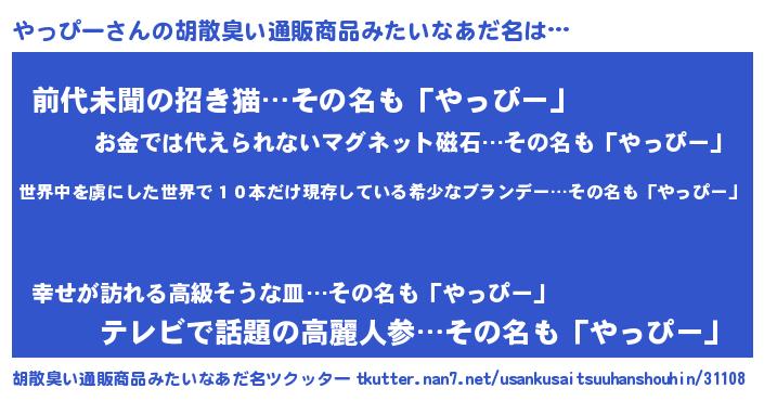 | 意味不明あだ名 | 『住所不定無職やっぴー(93歳)』 |