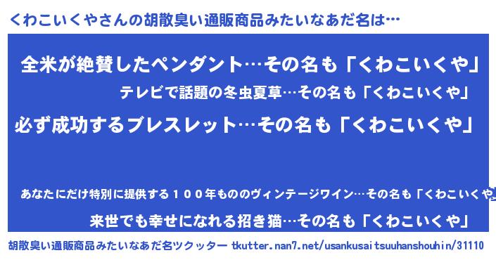 | 男性向けラノベタイトル風あだ名 | 『くわこいくやの憂鬱』 |