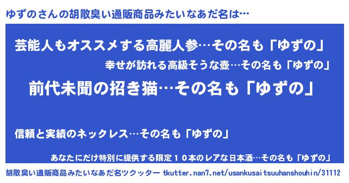 | 意味不明あだ名 | 『永久保存ゆずの』『自称ゆずの』 |