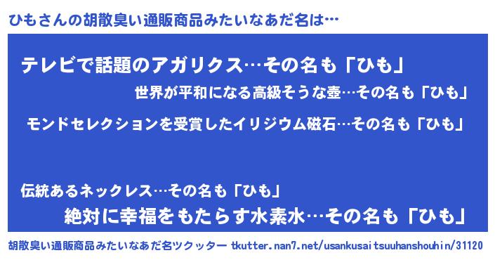 | ヒーロー風カッコイイあだ名 | 『慈愛の使者ひも』『サイバー戦士ヒモ』 |