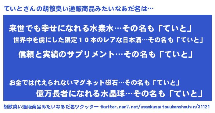 | ヘコむあだ名 | 『てい太郎』『ていと(震え声)』 |