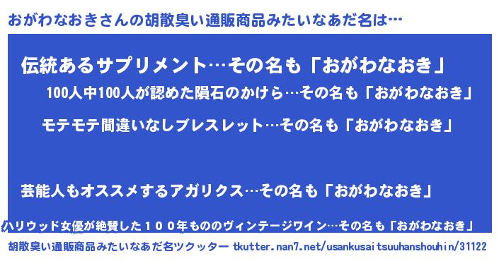 | ヘコむあだ名 | 『おがふぇ~』『おがを』『牛乳』 |