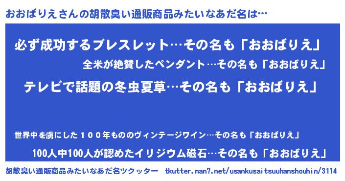 | 欧米人風あだ名 | 『ケンブリッジおおばりえ』 |