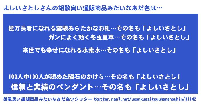 | ヘコむあだ名 | 『よしいさとし(遠い目)』『よしにゅー』 |