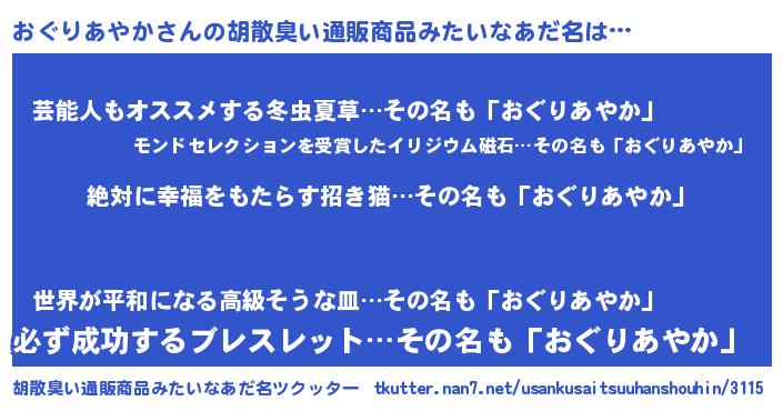| 意味不明あだ名 | 『永久保存おぐりあやか』 |