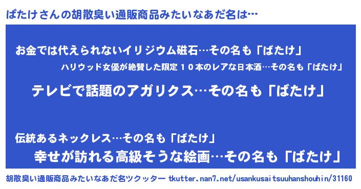 | ヘコむあだ名 | 『なまこ酢』『ばたっちょ』 |