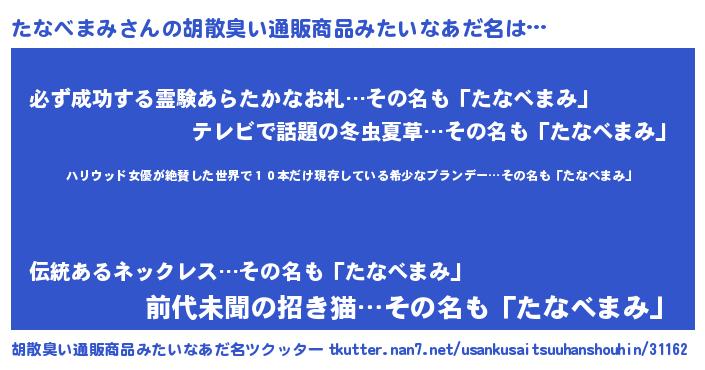 | 意味不明あだ名 | 『住所不定無職たなべまみ(79歳)』 |