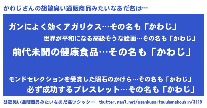 | 意味不明あだ名 | 『永久保存かわじ』『自称かわじ』 |
