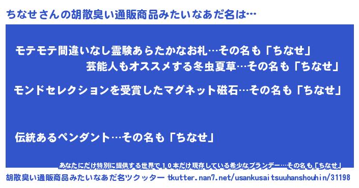 | ヒーロー風カッコイイあだ名 | 『慈愛の使者ちなせ』『スーパーチナセ』 |