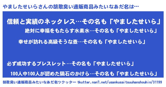 やましたせいらさんの胡散臭い通販商品みたいなあだ名をツクッター!