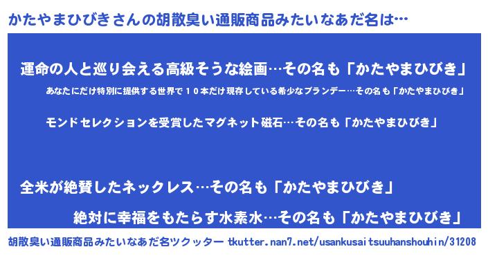 | ヘコむあだ名 | 『酢こんぶ』『かたやまひびき(笑)』 |