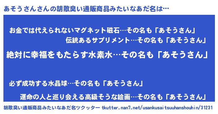 | 意味不明あだ名 | 『永久保存あそうさん』 |