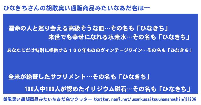 ひなきちさんの胡散臭い通販商品みたいなあだ名をツクッター!