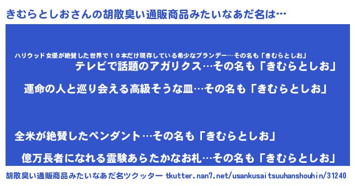 | 意味不明あだ名 | 『きむらとしおフォーエバー』 |