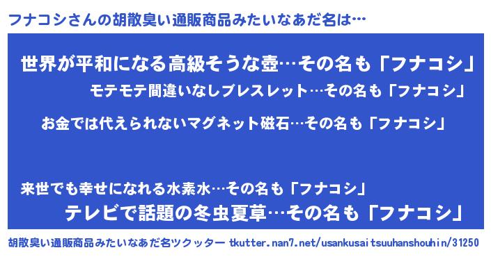 | ポケモン風あだ名 | 『フックウザ』『フナコダネ』 |