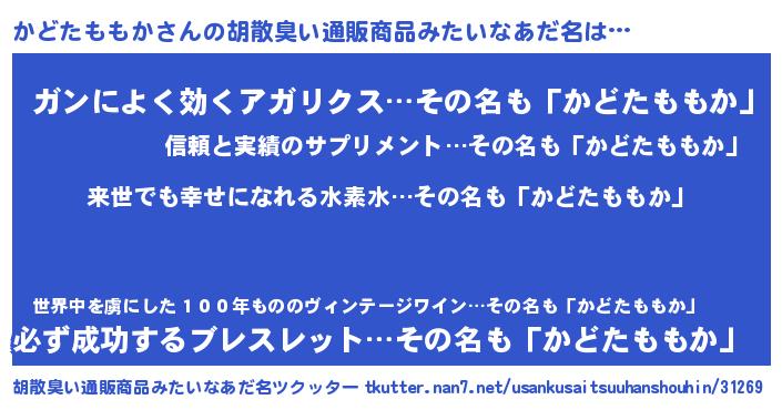 | 意味不明あだ名 | 『永久保存かどたももか』 |