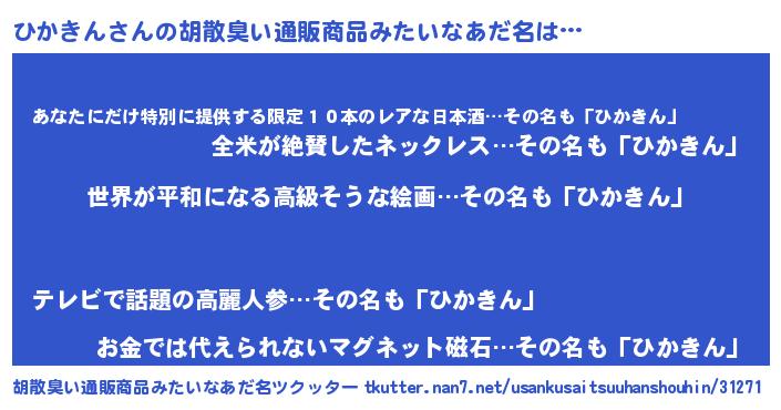 | 欧米人風あだ名 | 『ひかきん・ステッグマイヤー』 |