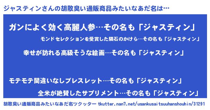 | ヒーロー風カッコイイあだ名 | 『ウルトラジャスティンマン』 |