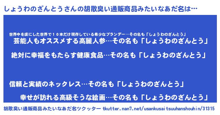 | 欧米人風あだ名 | 『ダルビッシュしょうわのざんとう』 |
