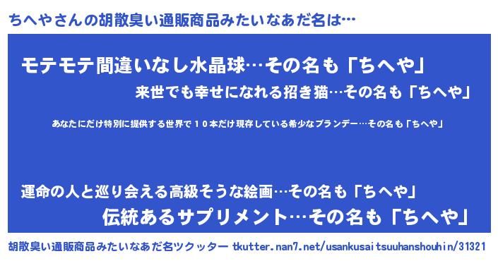 | 恥ずかしいあだ名 | 『プリティーちへや』『チヘリンリン』 |