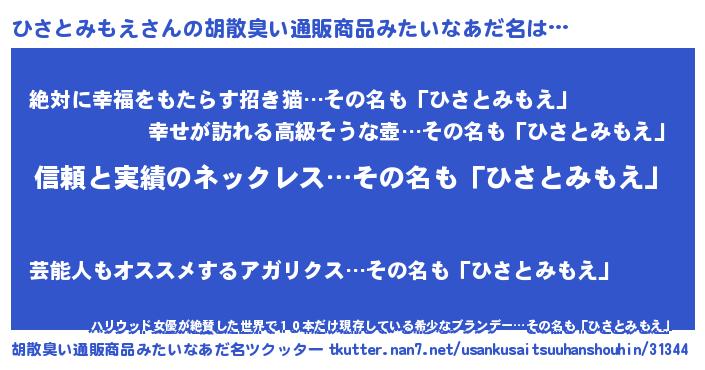 | 意味不明あだ名 | 『とにかく怪しいひさとみもえ』 |