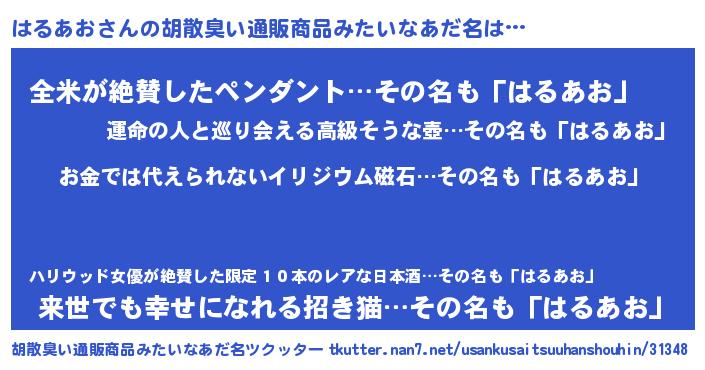 | ヘコむあだ名 | 『はるっぺ』『はるあお(震え声)』 |