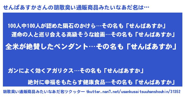 | 意味不明あだ名 | 『とにかく怪しいせんばあすか』 |