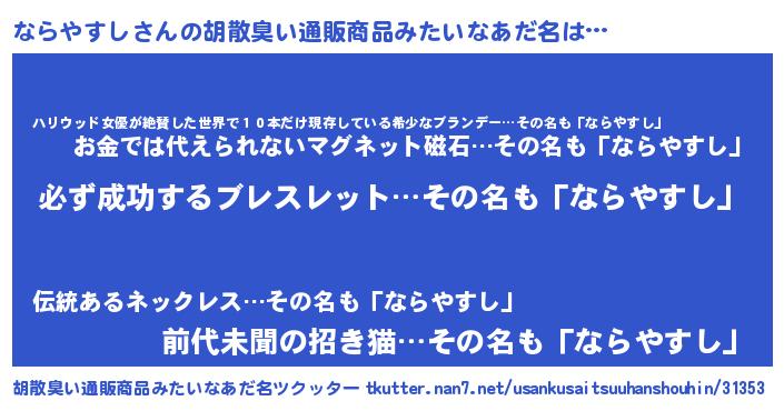 | ヘコむあだ名 | 『ならにー』『ならやすし(震え声)』 |