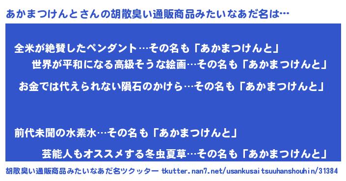 | 欧米人風あだ名 | 『アンジェラ・あかまつけんと』 |