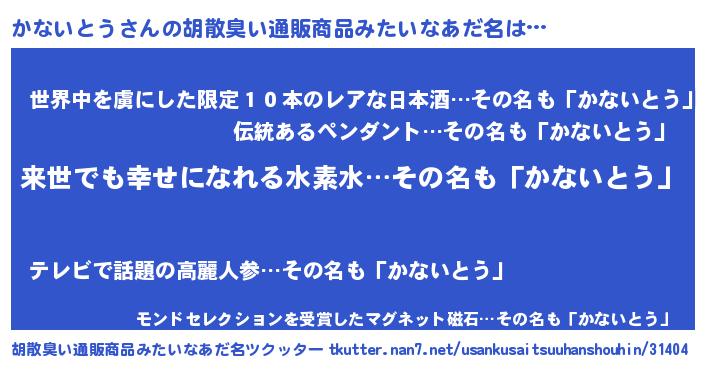 | 意味不明あだ名 | 『永久保存かないとう』『自称かないとう』 |