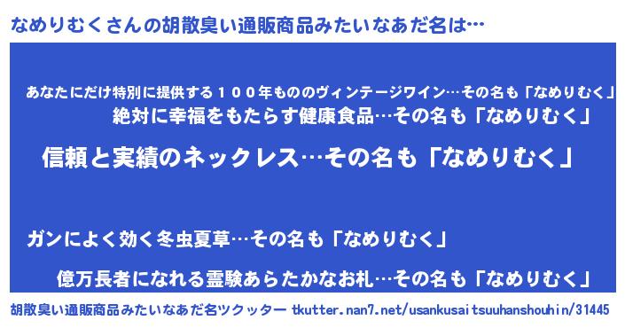 | ヒーロー風カッコイイあだ名 | 『暗黒騎士ナメ』『仮面ナメダー』 |