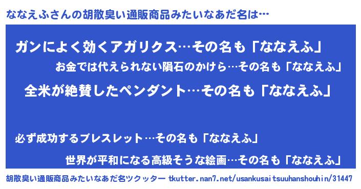 | 欧米人風あだ名 | 『ウサインななえふ』 |