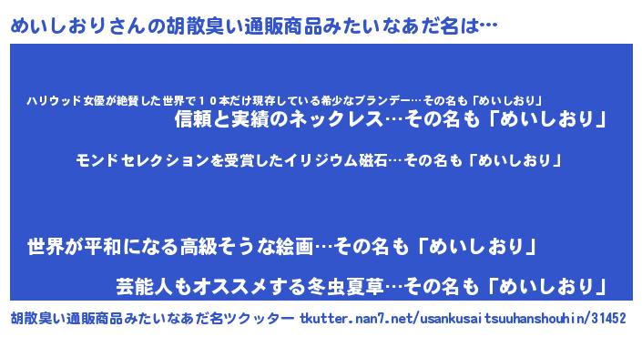 | ヒーロー風カッコイイあだ名 | 『慈愛の使者めいしおり』『仮面メイダー』 |