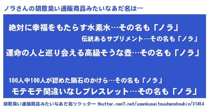 | ヘコむあだ名 | 『レバニラ』『ノラ(苦笑)』『ノラを』 |
