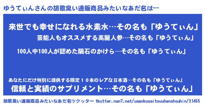 | ヒーロー風カッコイイあだ名 | 『友情の使者ゆうてぃん』『天弓騎士ユウ』 |