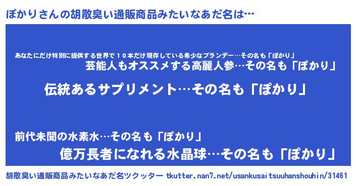 | 意味不明あだ名 | 『とにかく怪しいぽかり』『自称ぽかり』 |