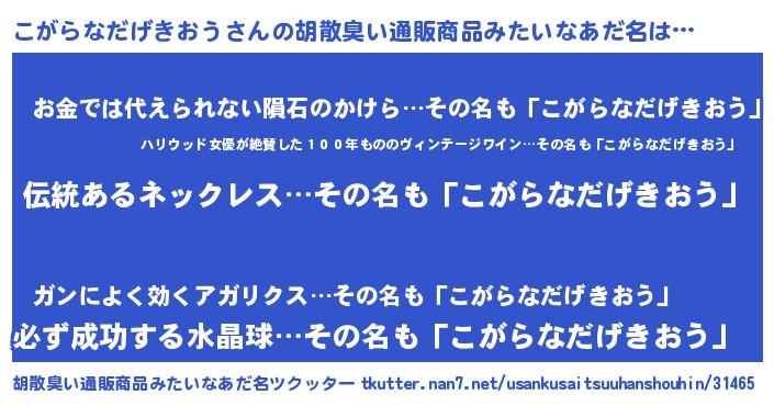 | ヘコむあだ名 | 『こが太郎』『こがにゅー』 |
