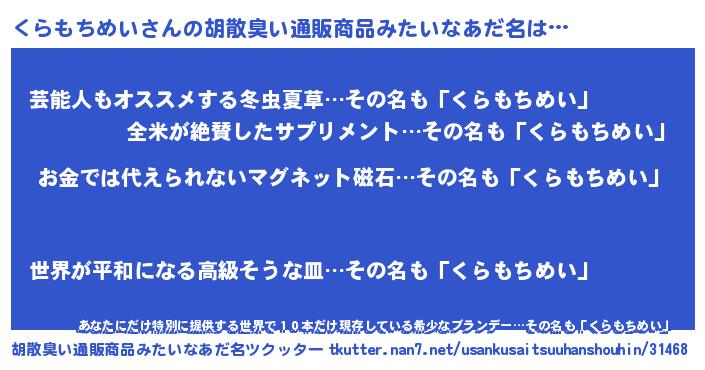 | 肩書あだ名 | 『くらもちめい教授』『くらもちめい総統』 |