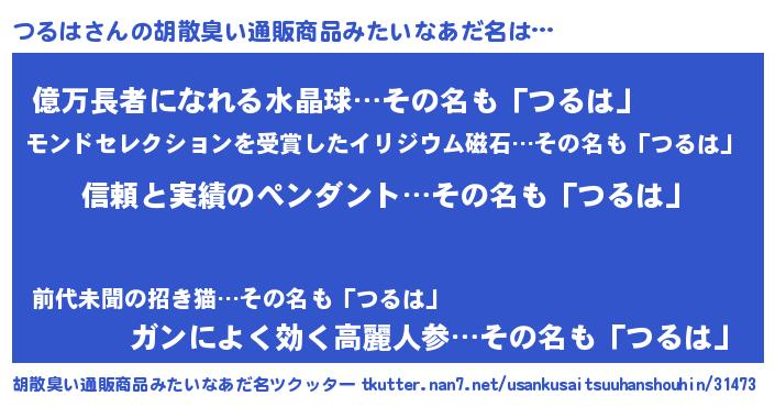 | 意味不明あだ名 | 『とにかく怪しいつるは』『自称つるは』 |