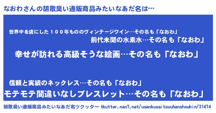 | 女子向けラノベタイトル風あだ名 | 『なおわの雑貨屋さん』 |