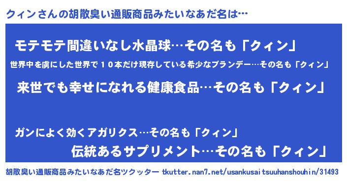 | ヘコむあだ名 | 『クィン(笑)』『クィにゅー』『牛乳』 |
