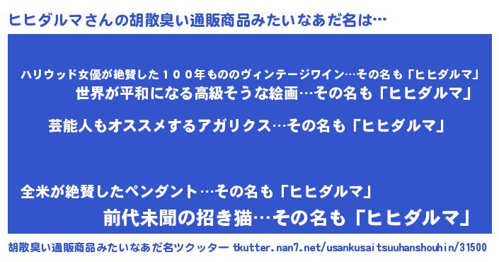 | 意味不明あだ名 | 『自称ヒヒダルマ』『永久保存ヒヒダルマ』 |