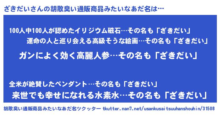 | 意味不明あだ名 | 『自称ざきだい』『永久保存ざきだい』 |
