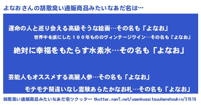 | 欧米人風あだ名 | 『ダルビッシュよなお』『マイケルよなお』 |