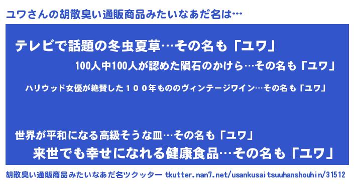 | ヘコむあだ名 | 『ユワ(笑)』『酢こんぶ』 |
