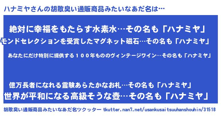 | 意味不明あだ名 | 『住所不定無職ハナミヤ(12歳)』 |
