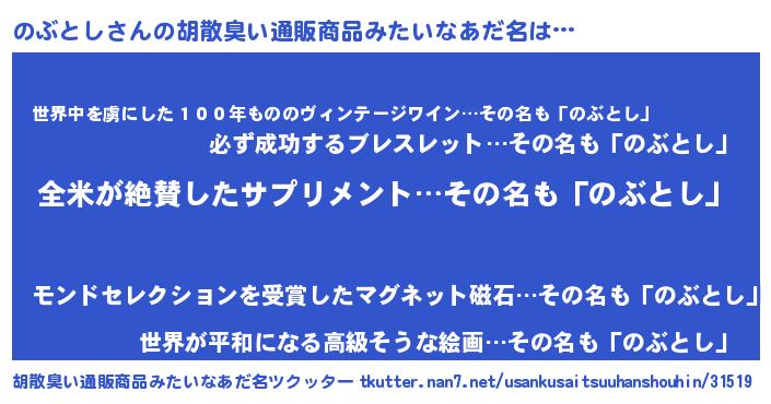 | ピコ太郎風あだ名 | 『ノブ三郎』『ピノ一郎』『ノコ太郎』 |