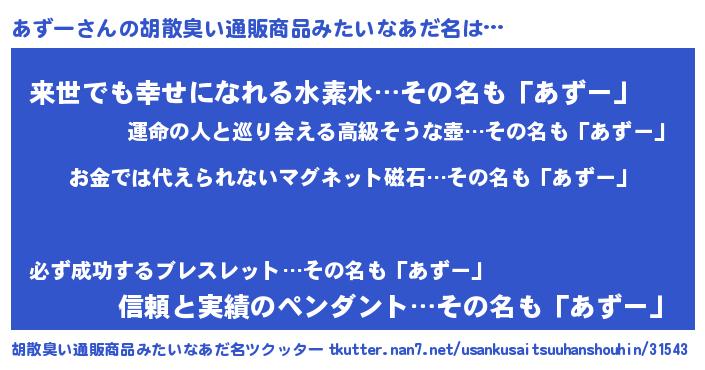 | ヘコむあだ名 | 『あずー(笑)』『あずっちょ』『牛乳』 |